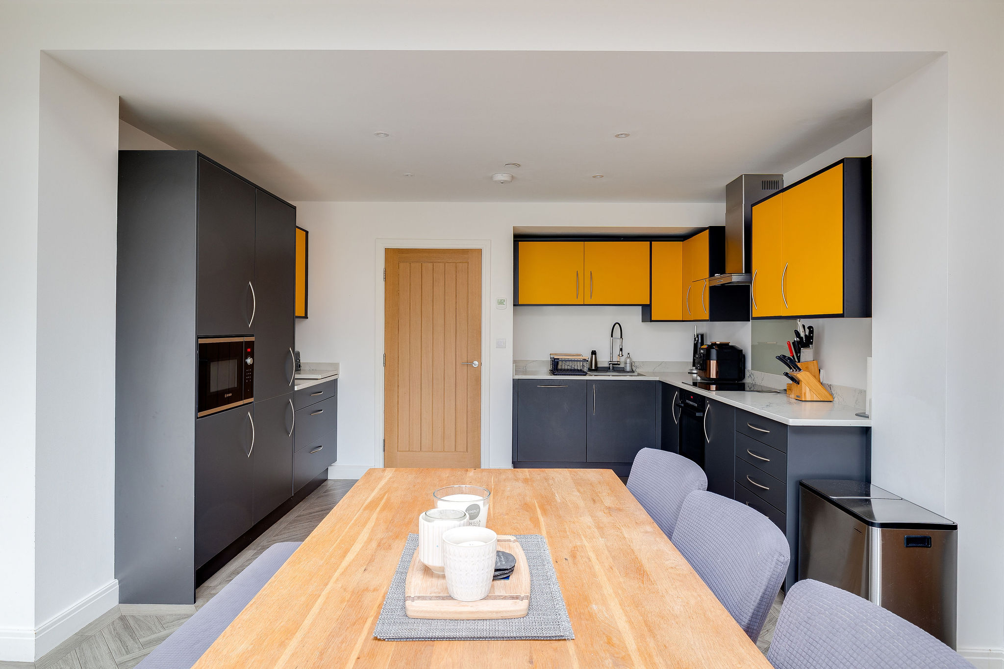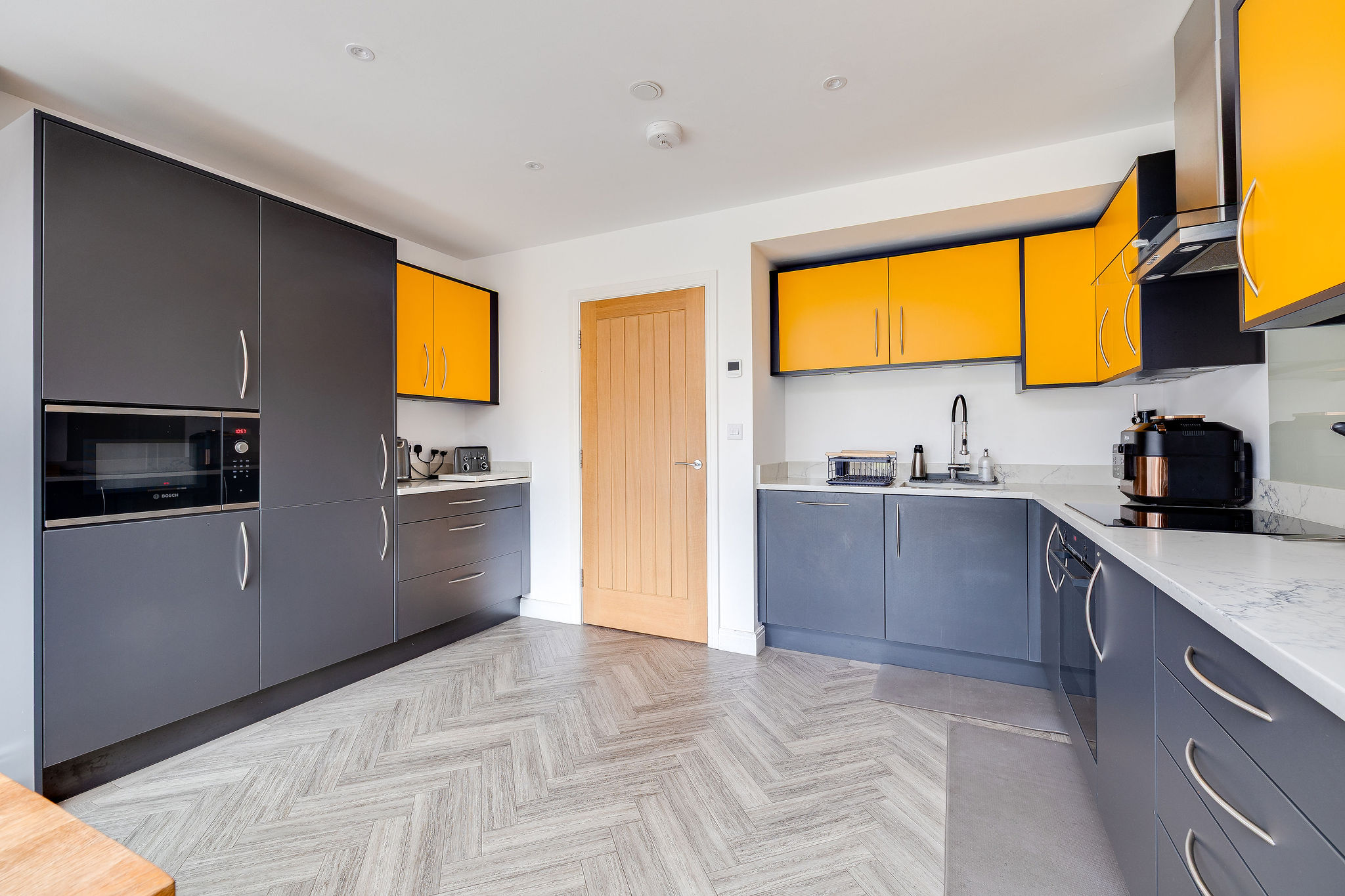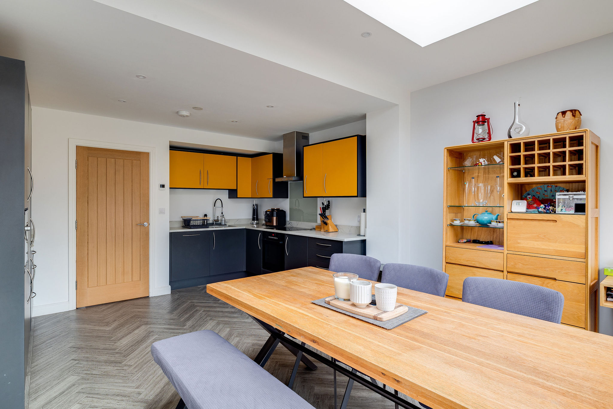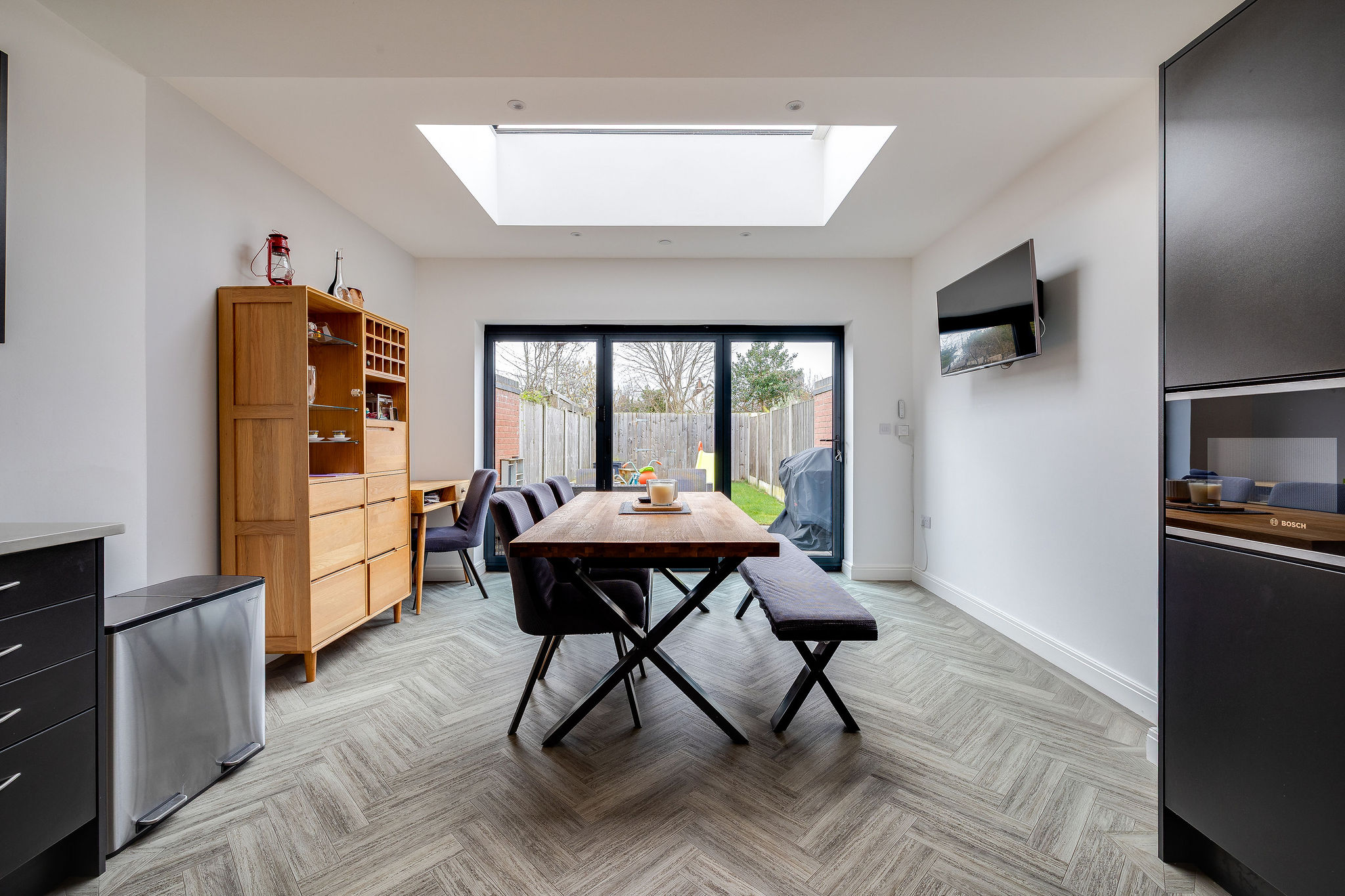 - Stunning open plan living/dining/kitchen with a contemporary range of fitted units with Quartz work surfaces, under floor heating, ceiling lantern with bi-fold doors onto the rear patio