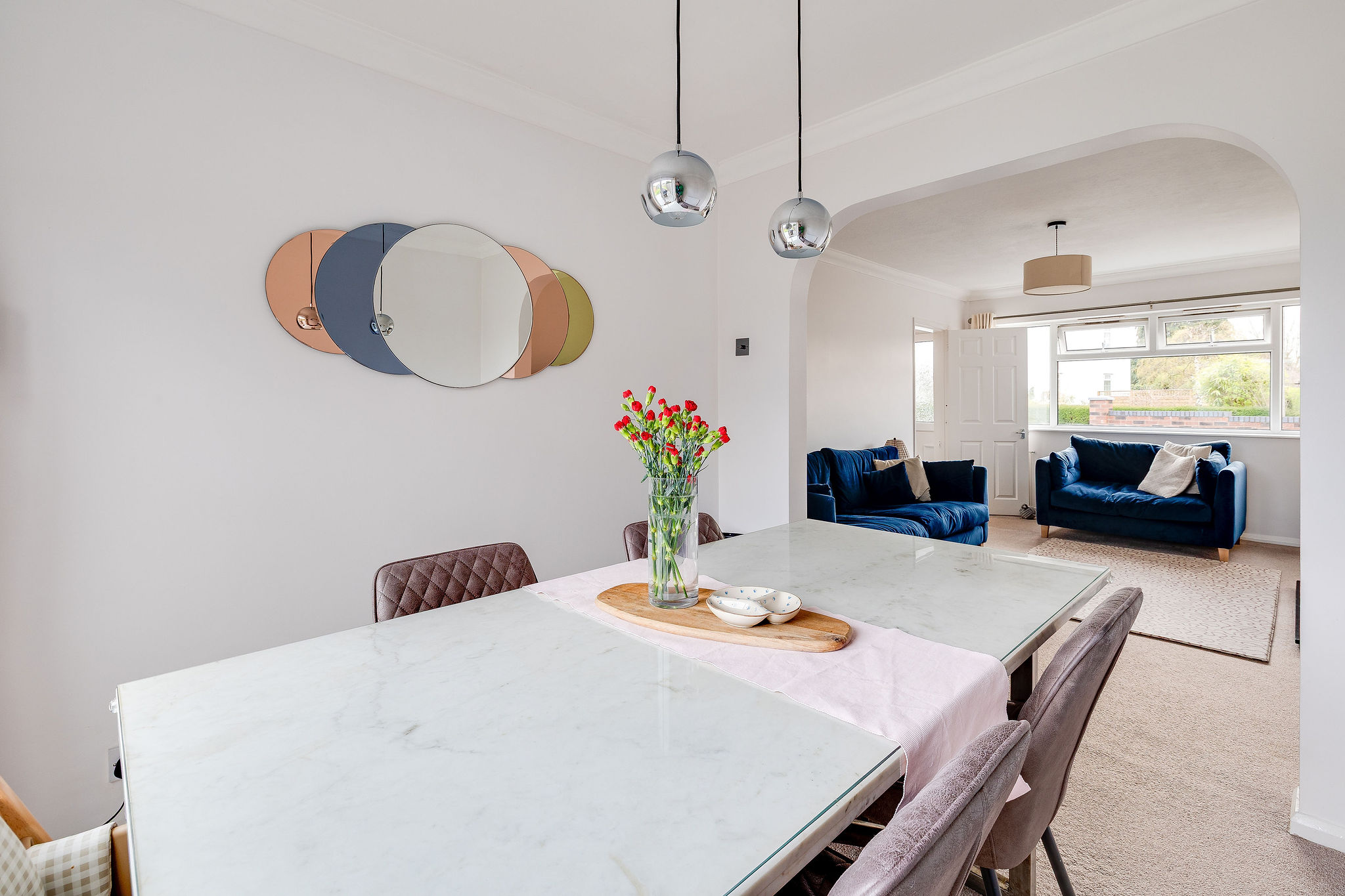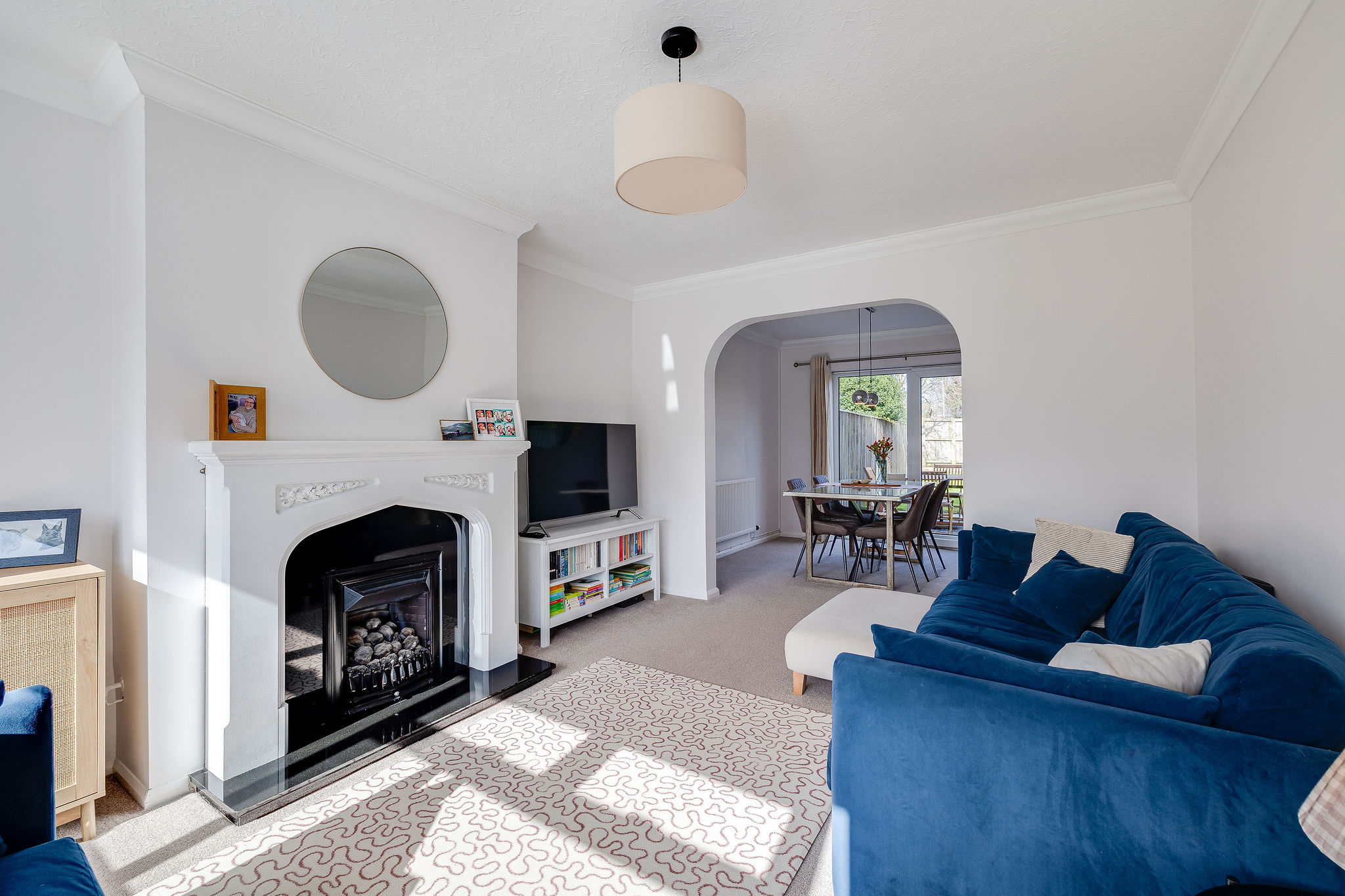 - Open plan living room with an archway through to the dining room with a dual aspect full of natural light