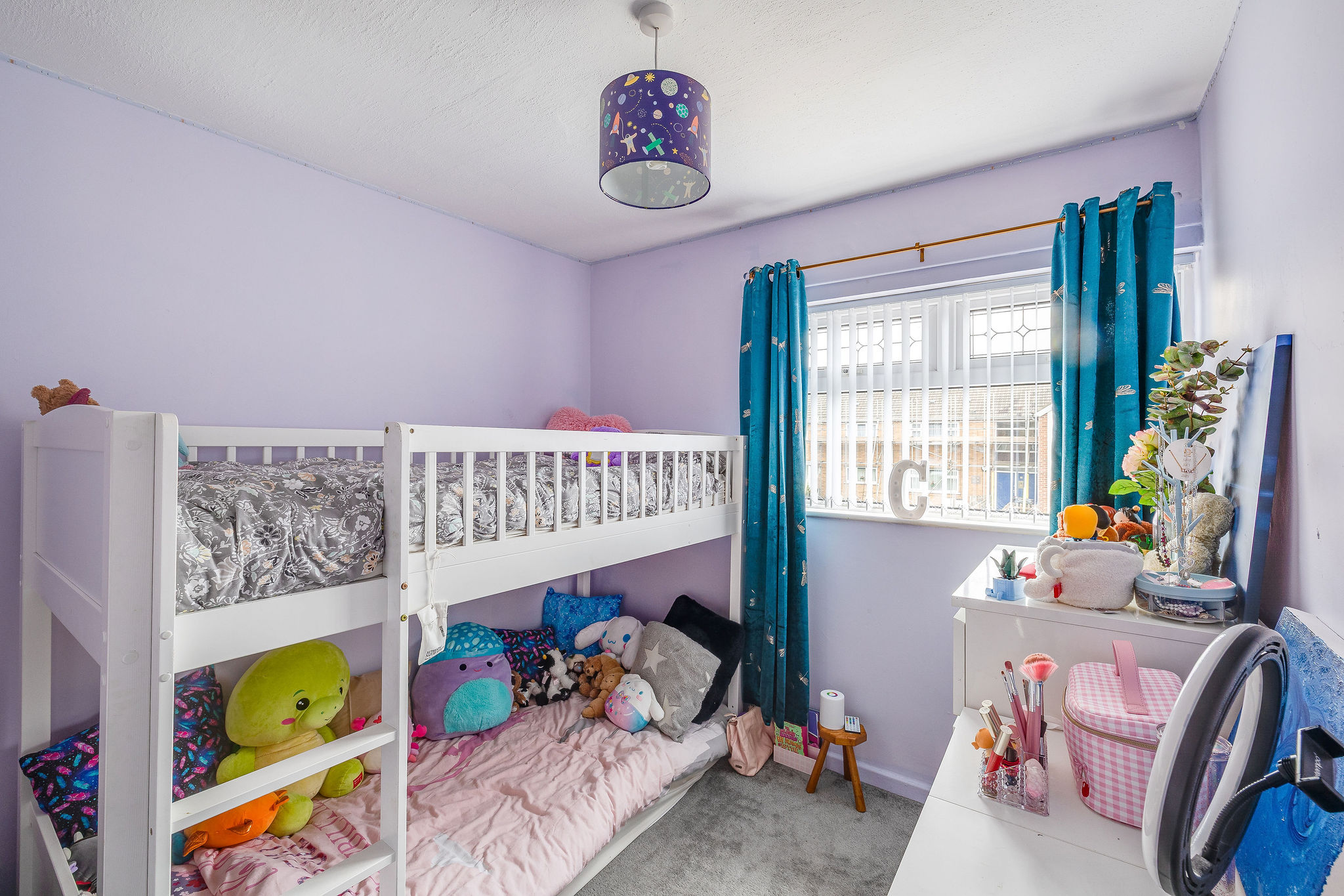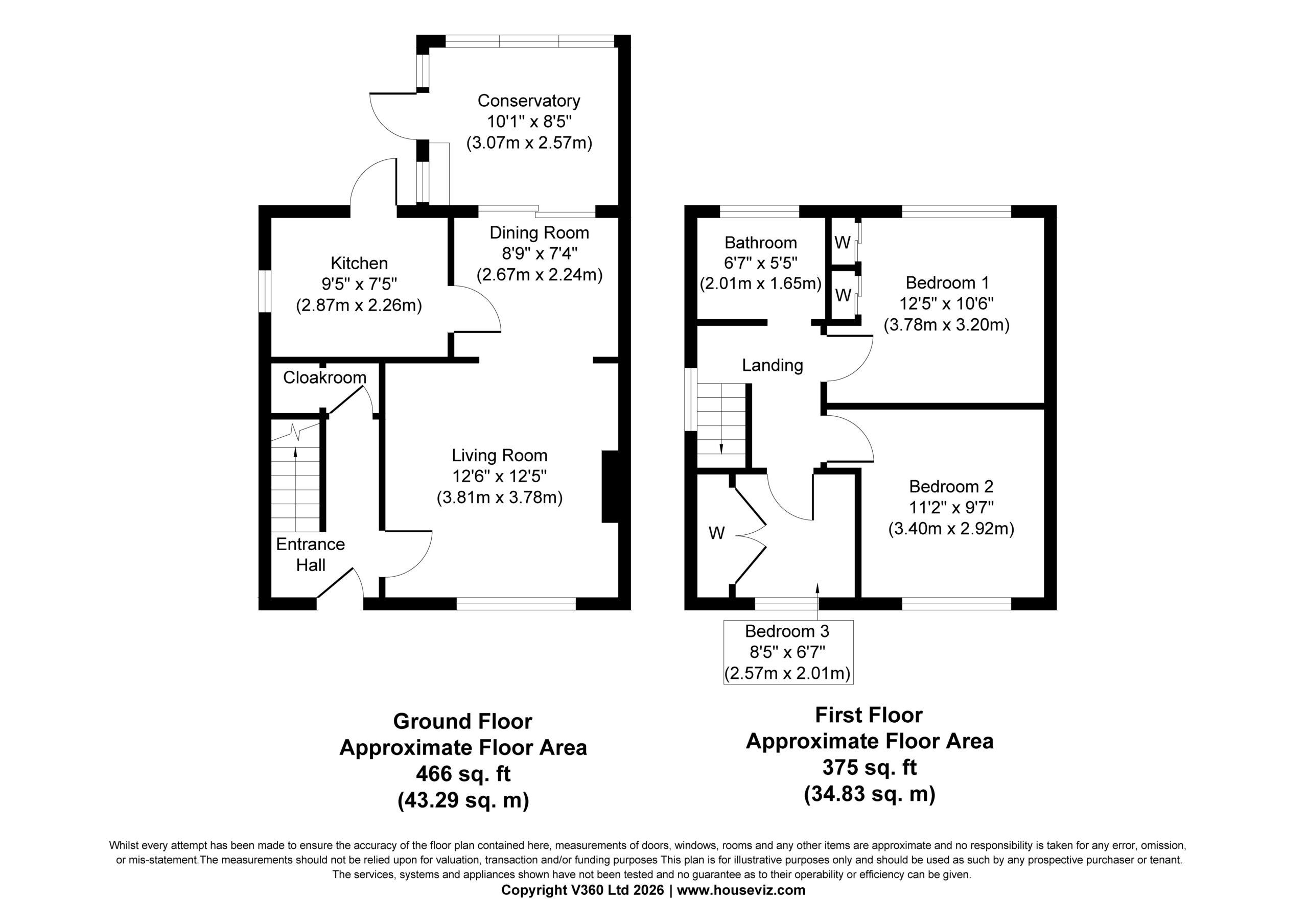 - Three first floor bedrooms with ladder access to a boarded loft, bathroom with a modern white suite.