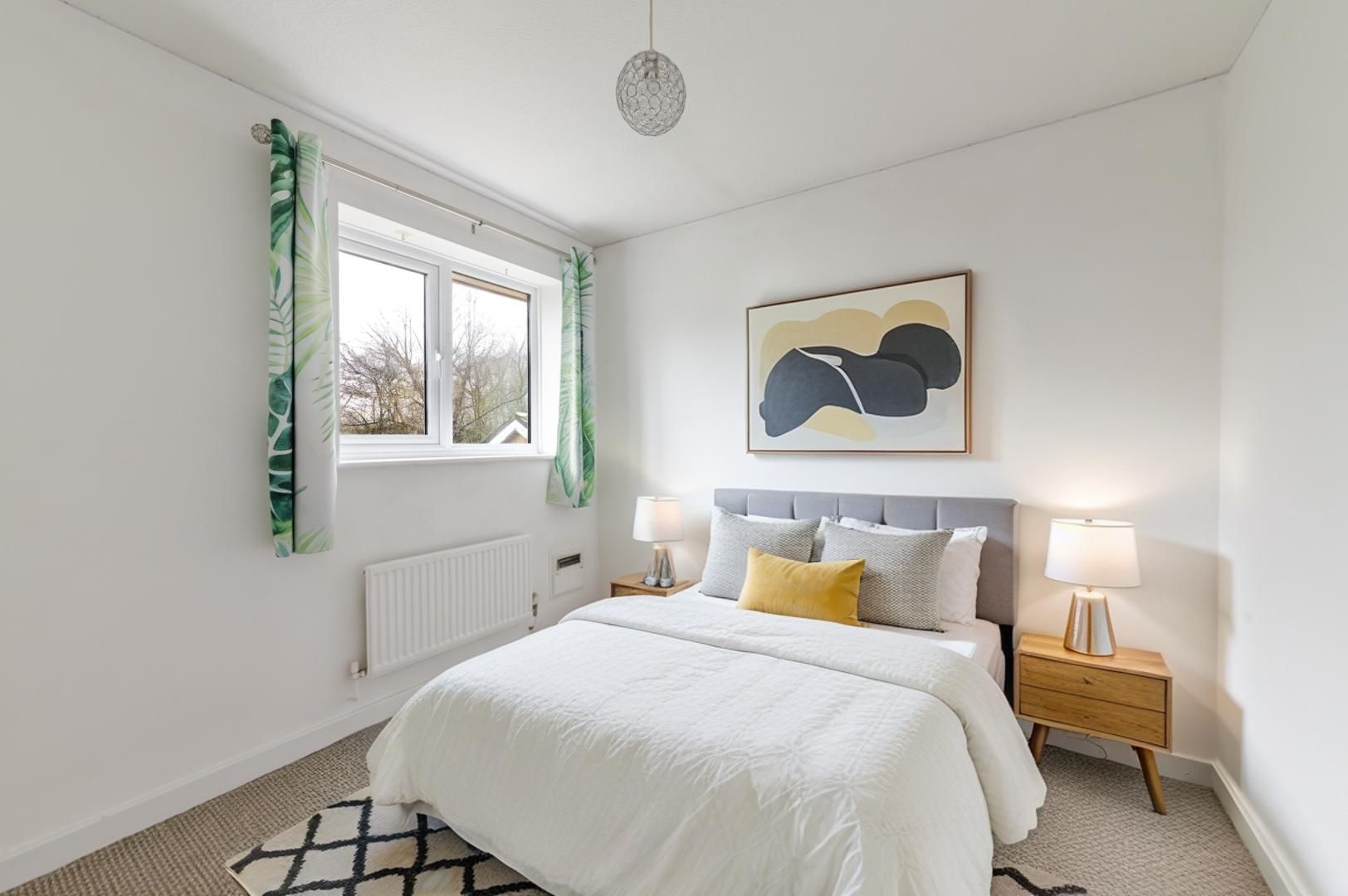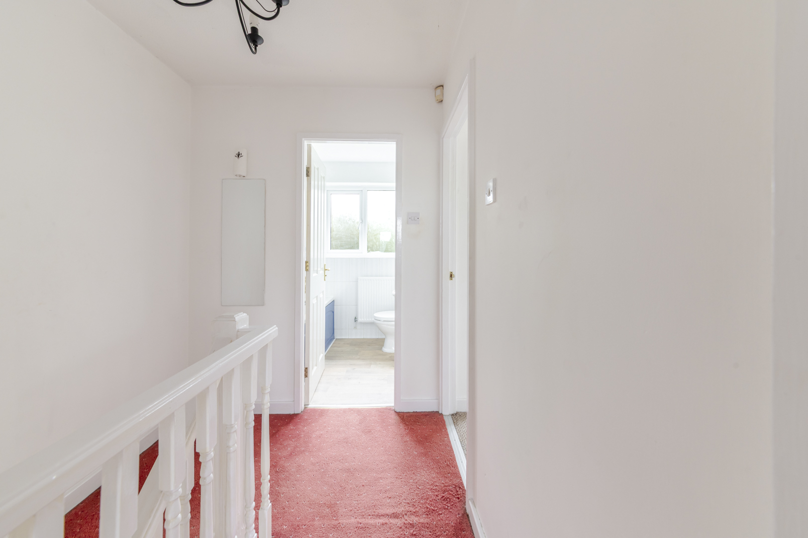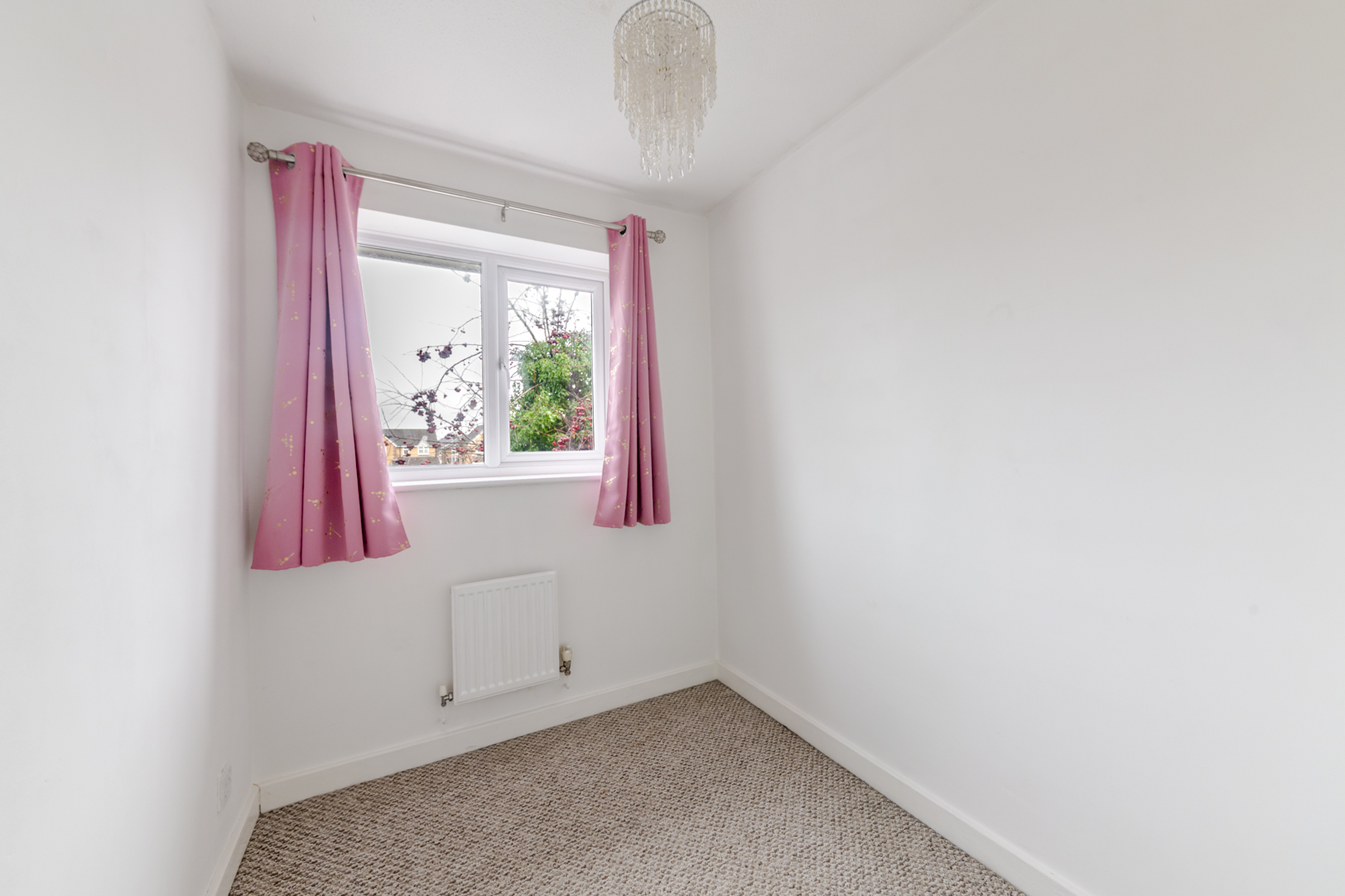 To the first floor are three bedrooms and the family bathroom. The principal bedroom is a generous double and benefits from its own en suite shower room. The second bedroom overlooks the rear garden, while the third bedroom is a well proportioned single, ideal as a child’s room or home office, and includes a large built in storage cupboard. The family bathroom is fitted with a bath and overhead shower.
