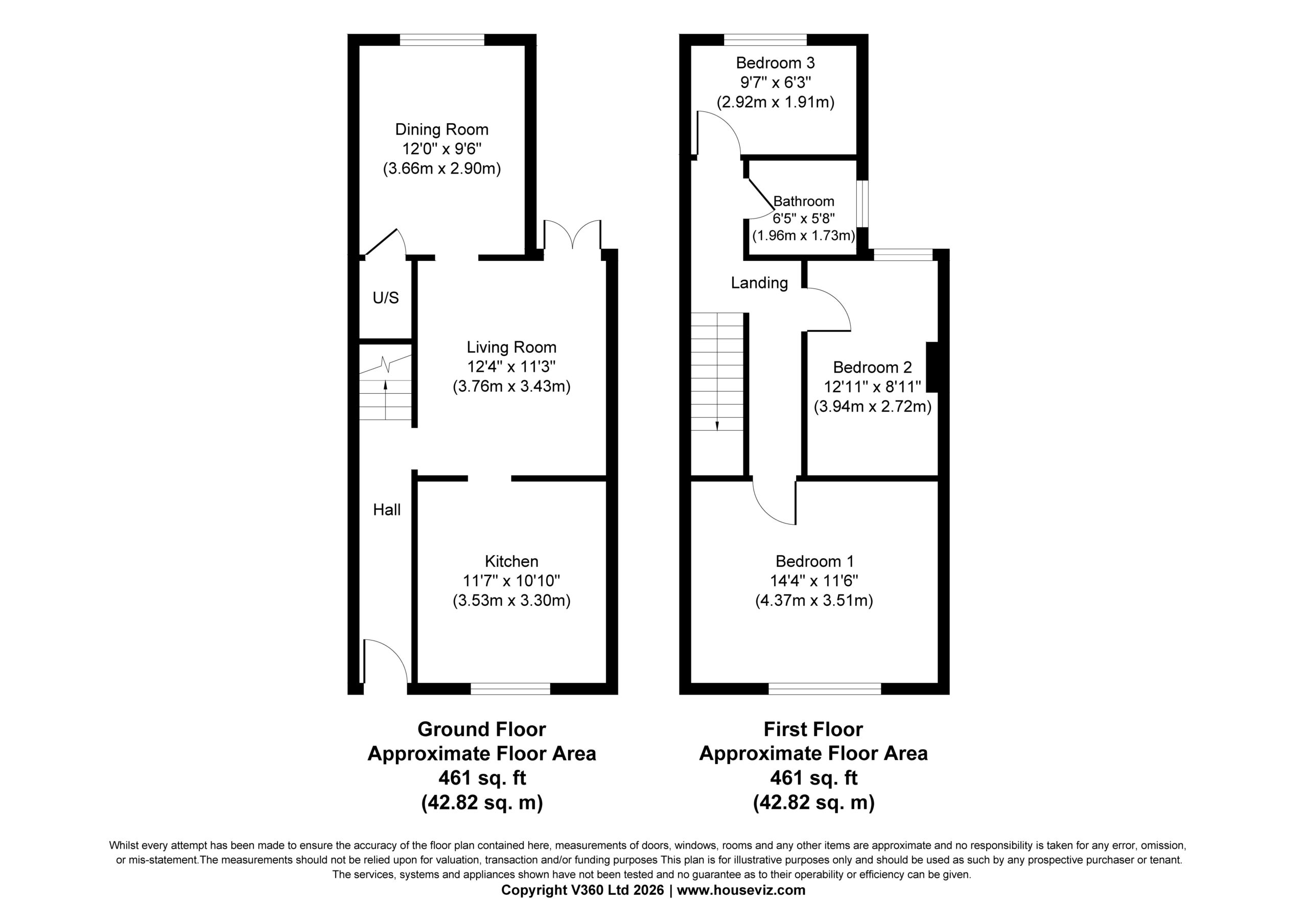 - Three bedrooms with two doubles and a single, modern first floor bathroom with a white suite