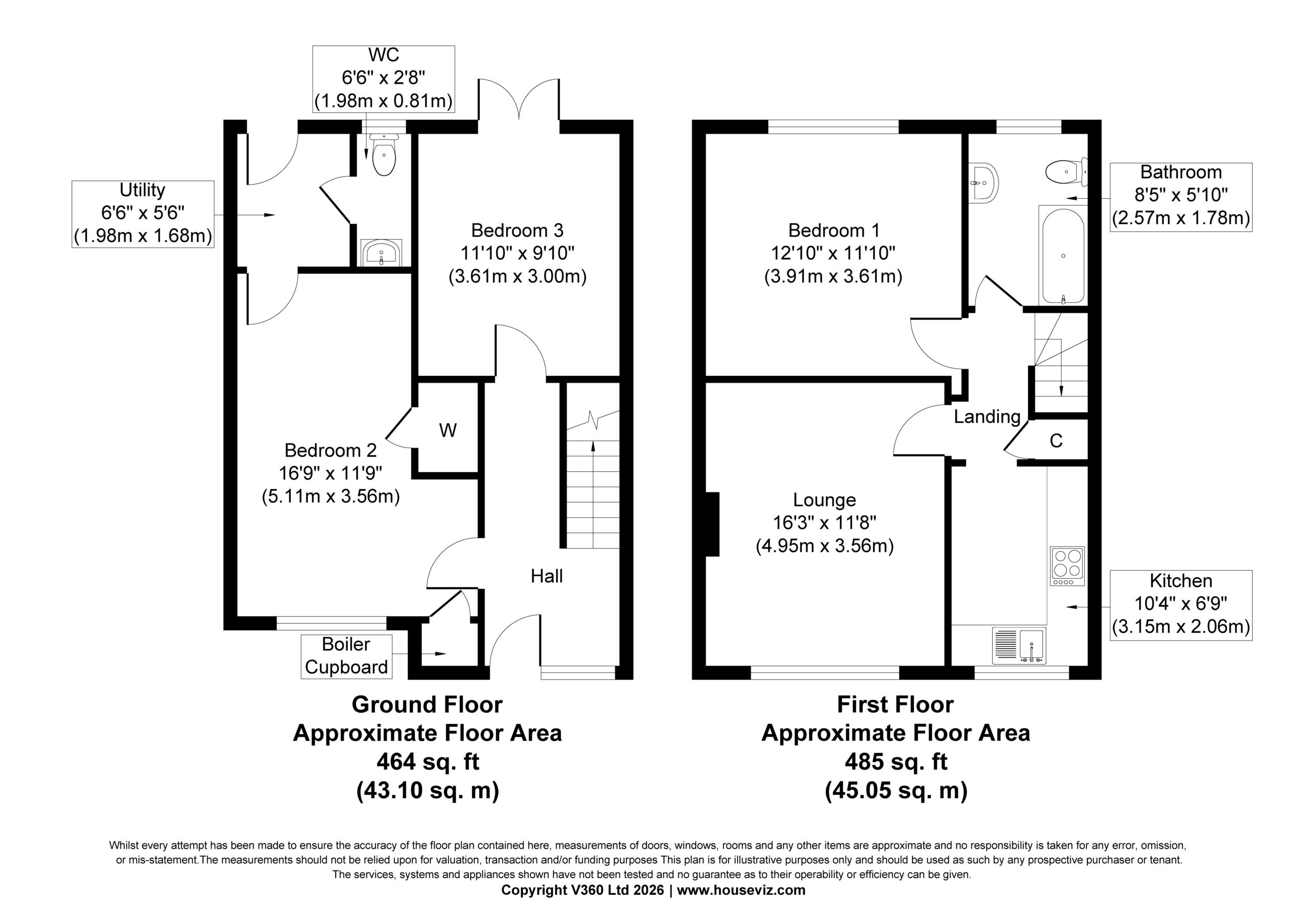 - Good sized entrance hall with two double ground floor bedrooms, one with UPVC French doors onto the rear garden, downstairs cloaks/w./c and utility