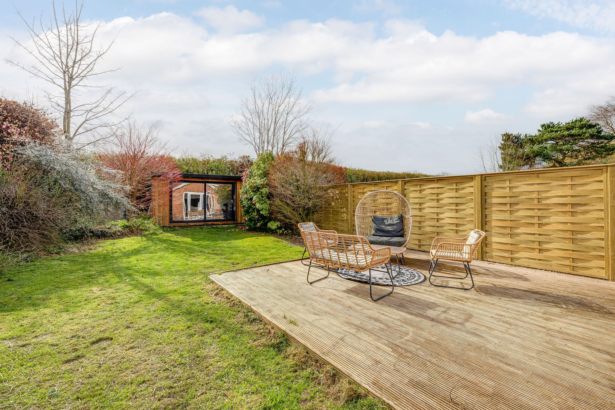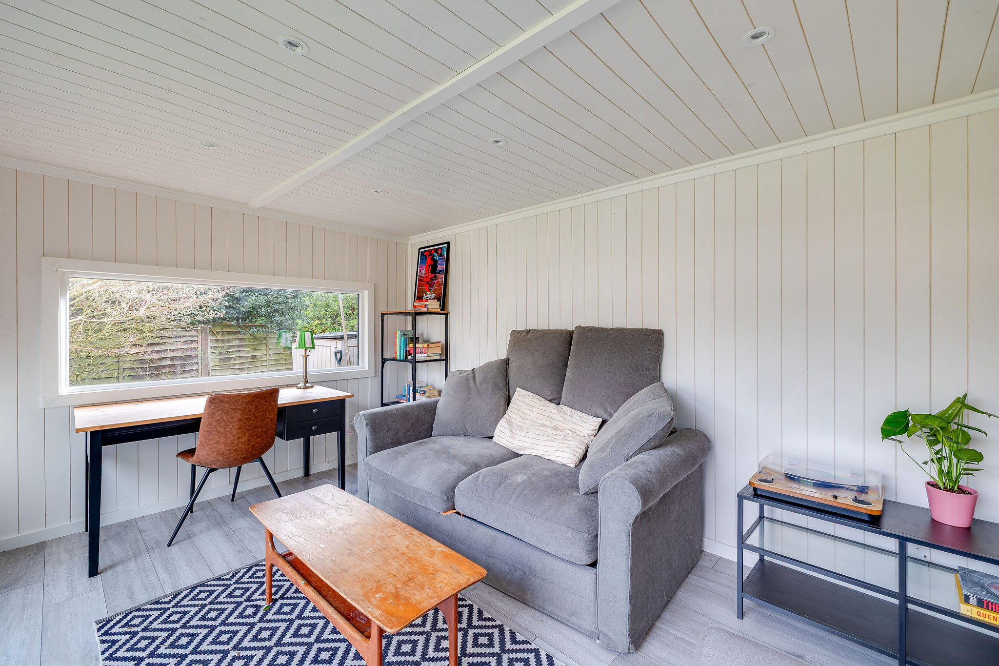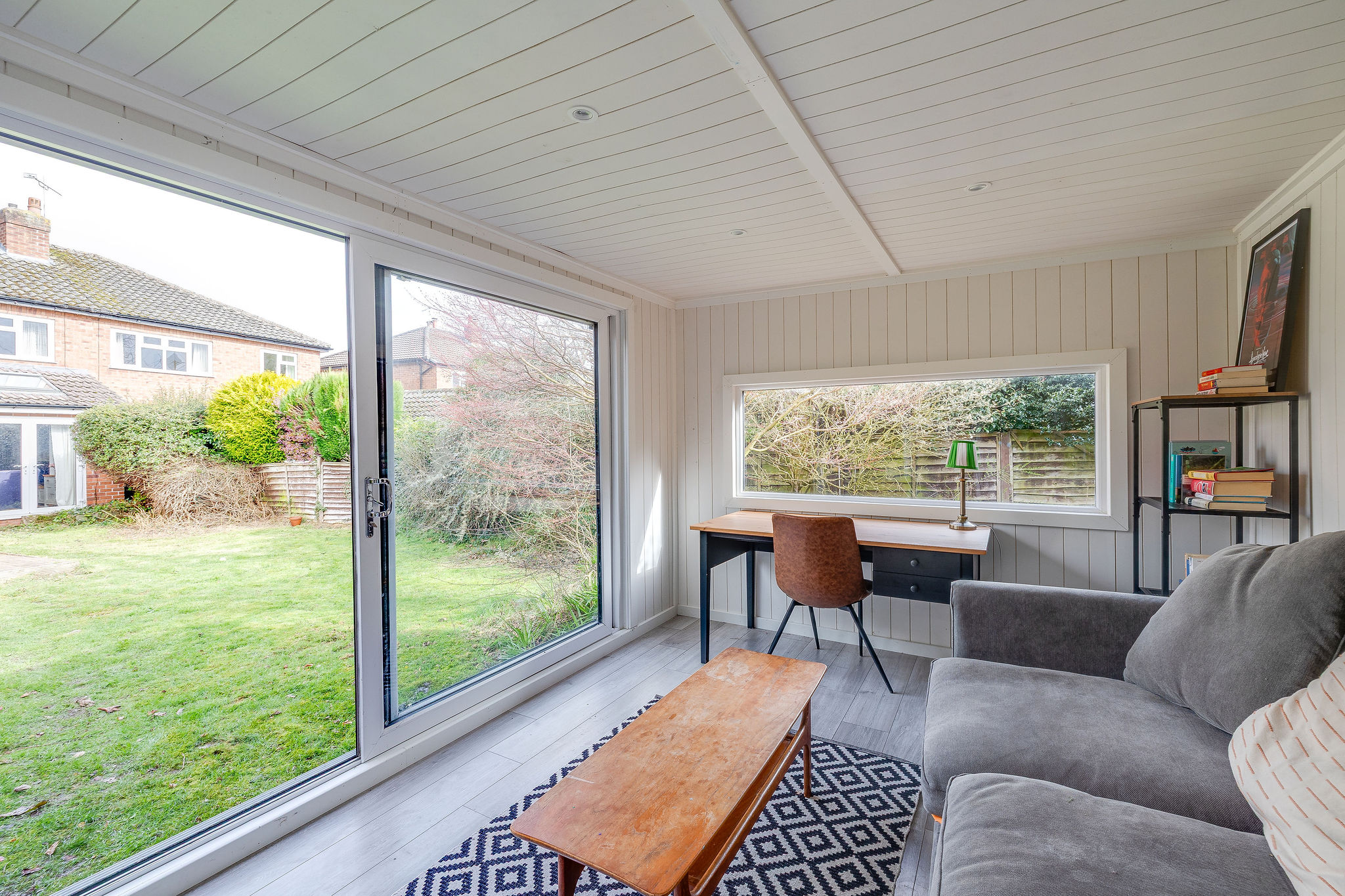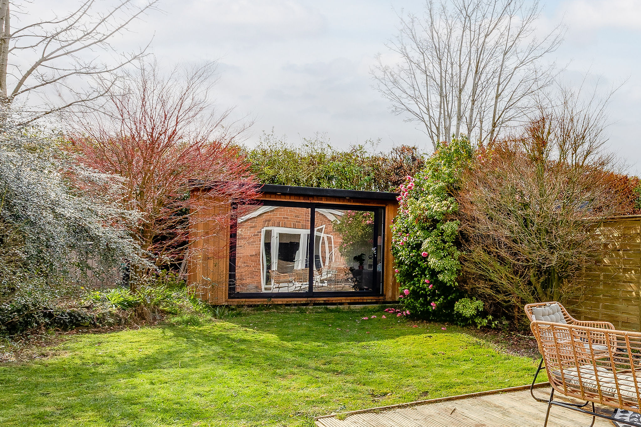 - Private southerly facing rear garden with a detached modern insulated garden room/home office, off road parking to the front