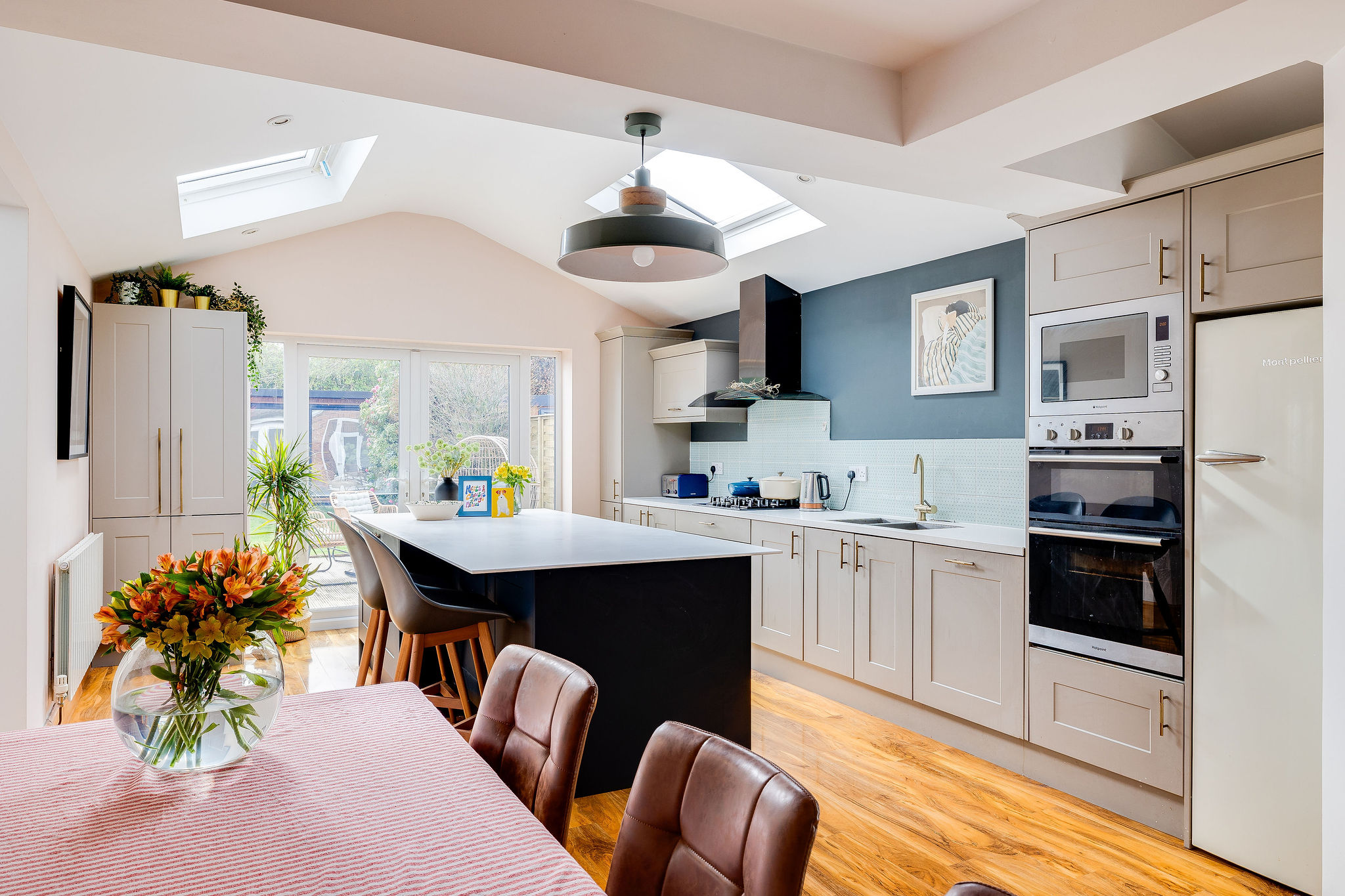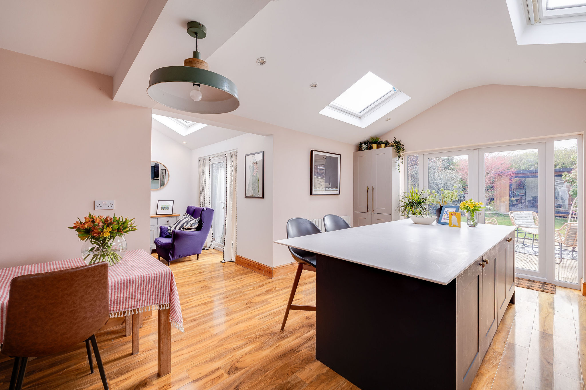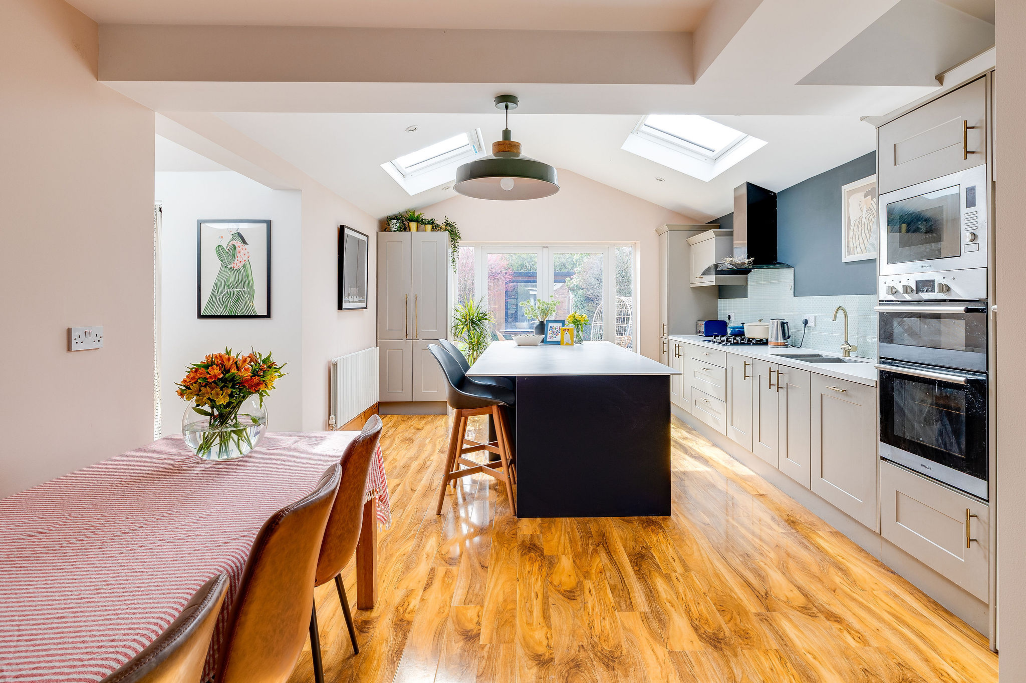 - Stunning full width rear extension with further extension to the side adding an utility room, stunning open plan over 24ft long dining kitchen with part vaulted ceiling and a central island