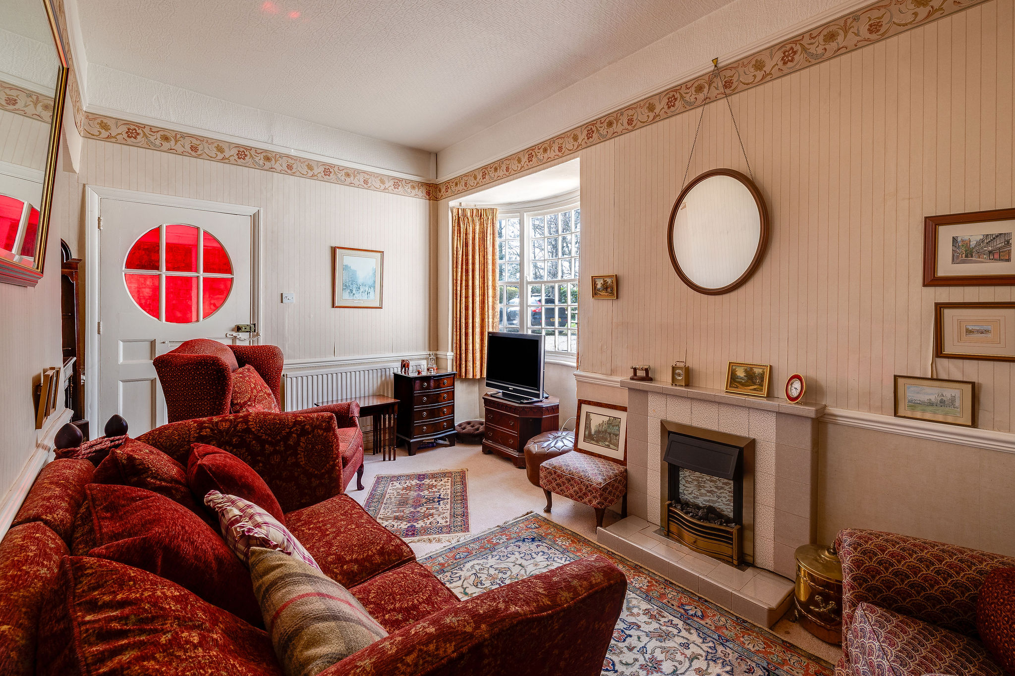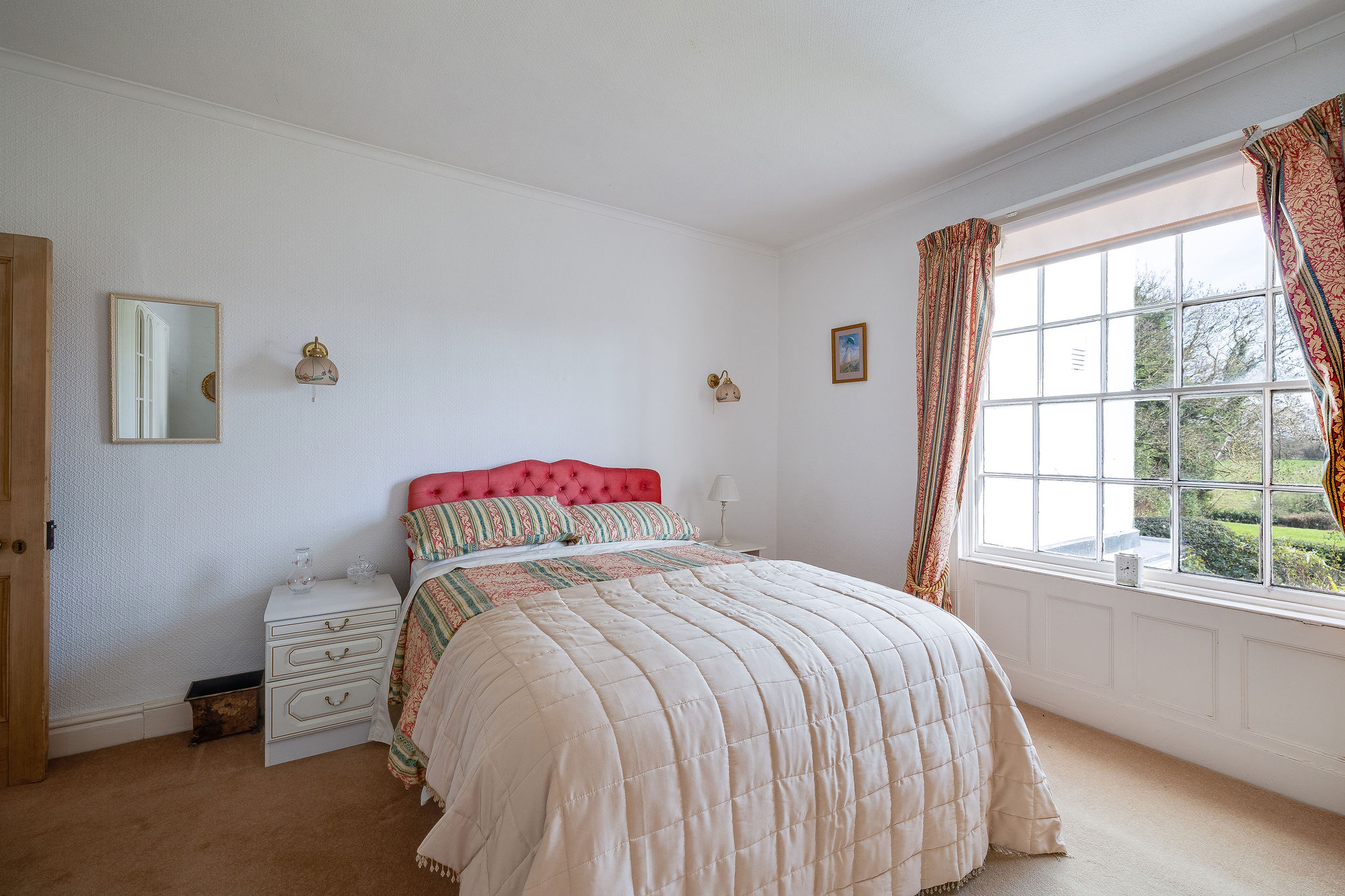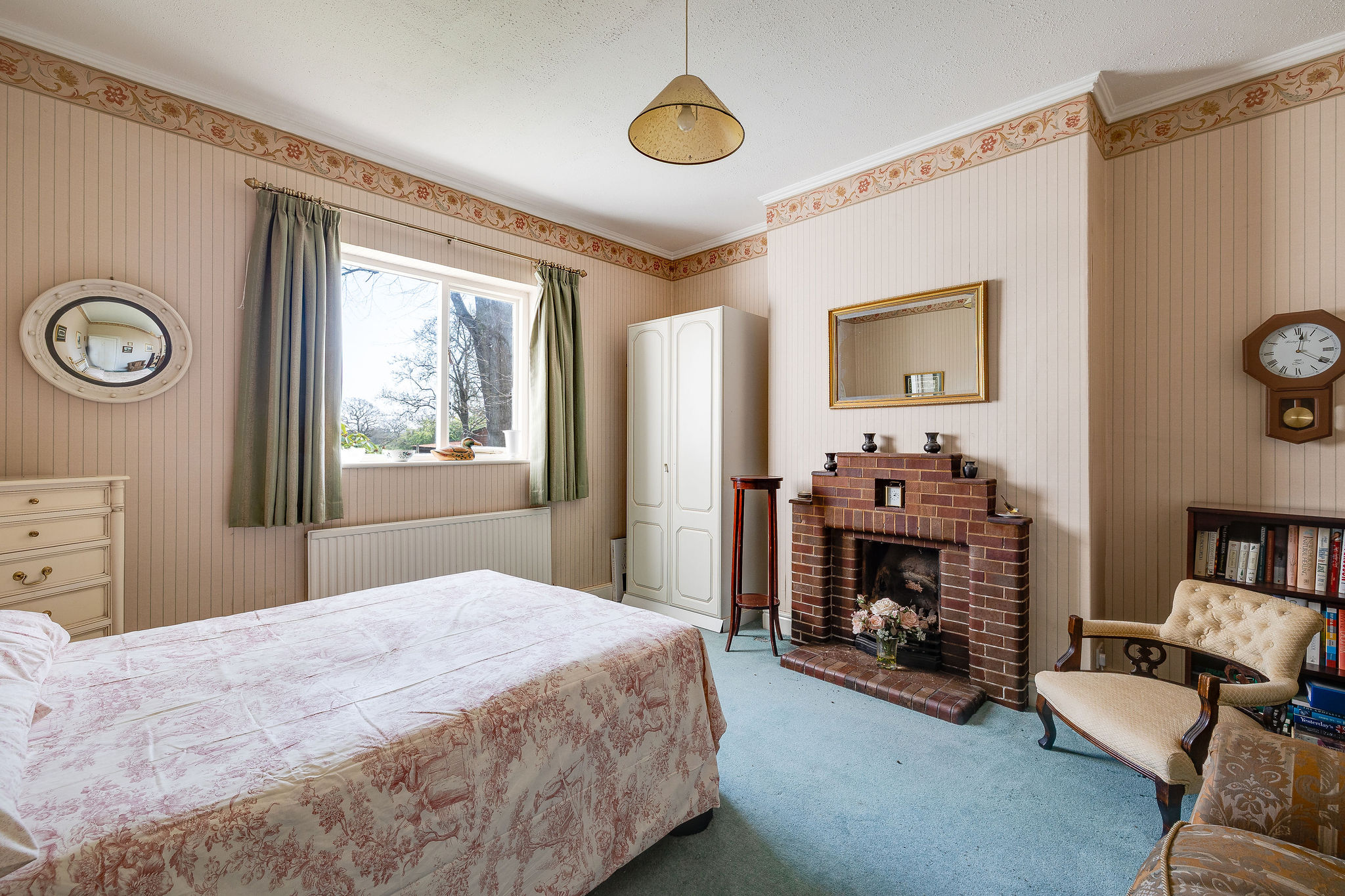 A tree-lined driveway leads to the house, which sits comfortably within its plot. The gardens are well established, creating a sense of seclusion, though the property as a whole would benefit from a programme of updating.