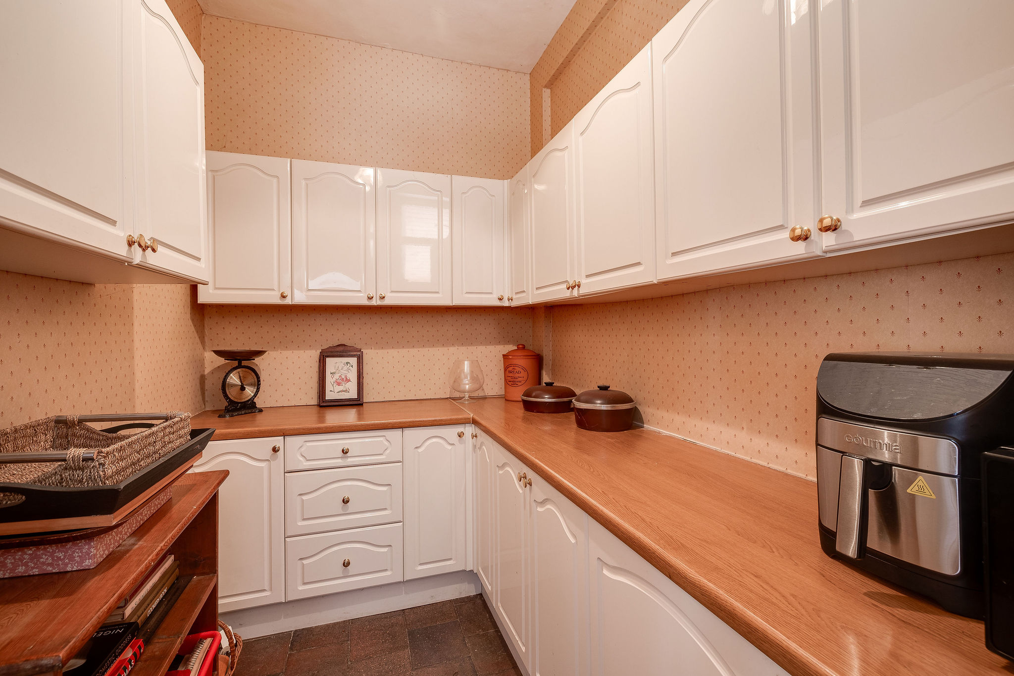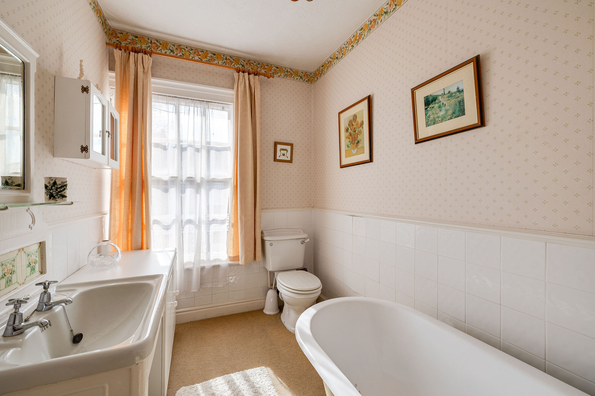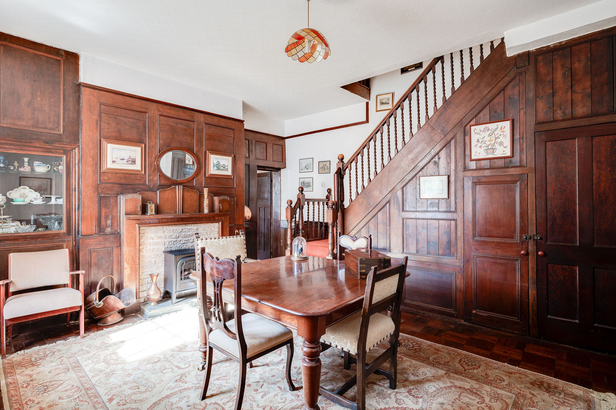 A tree-lined driveway leads to the house, which sits comfortably within its plot. The gardens are well established, creating a sense of seclusion, though the property as a whole would benefit from a programme of updating.
