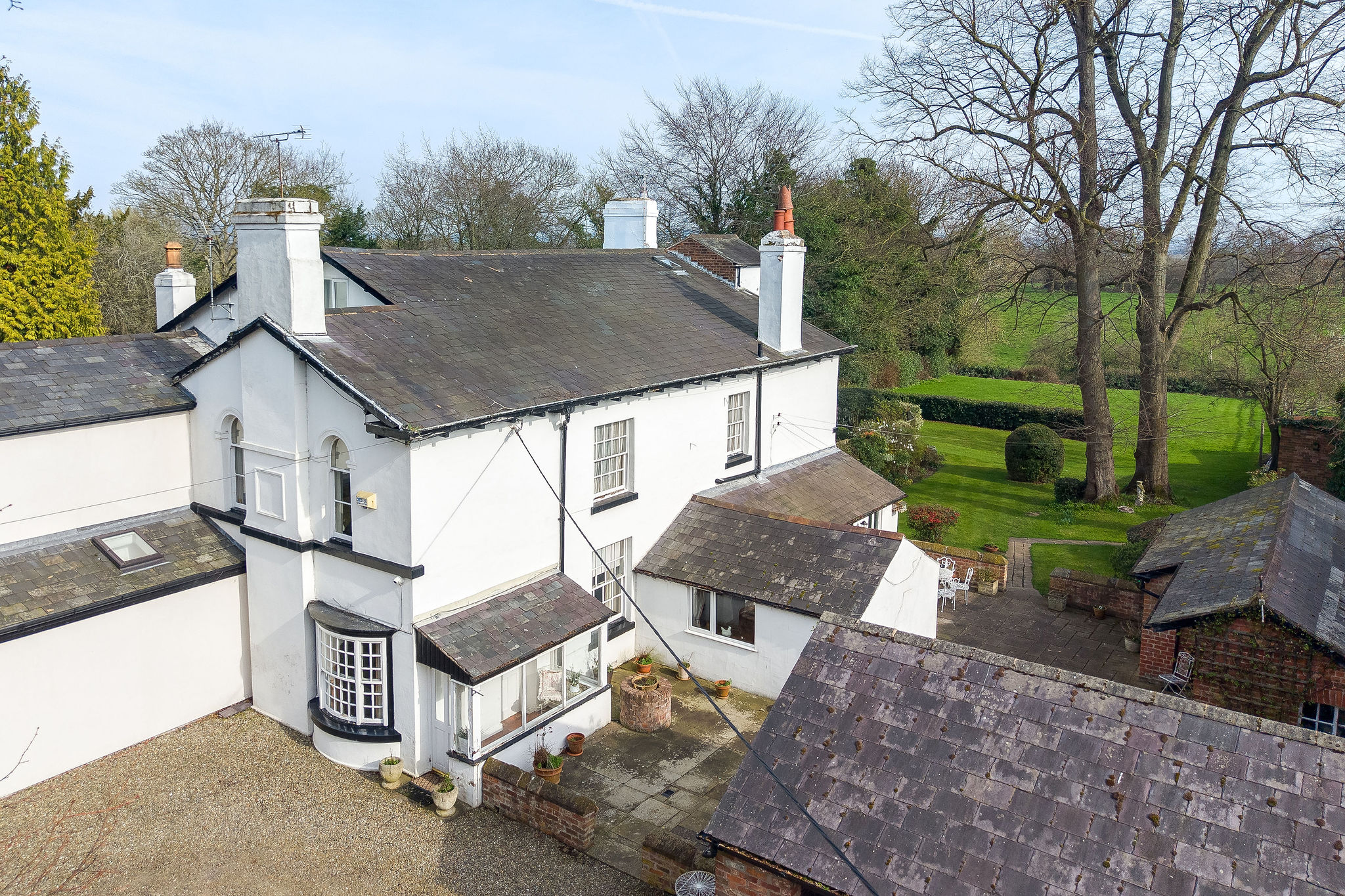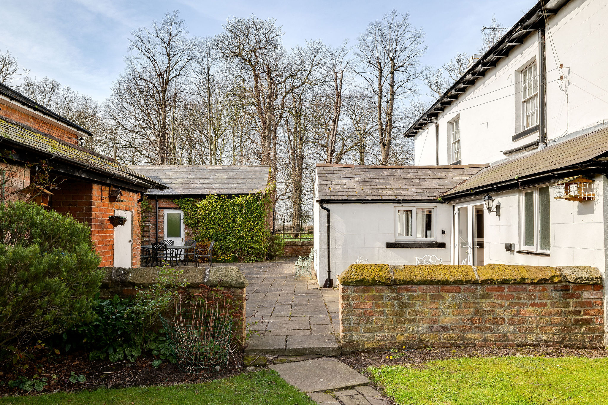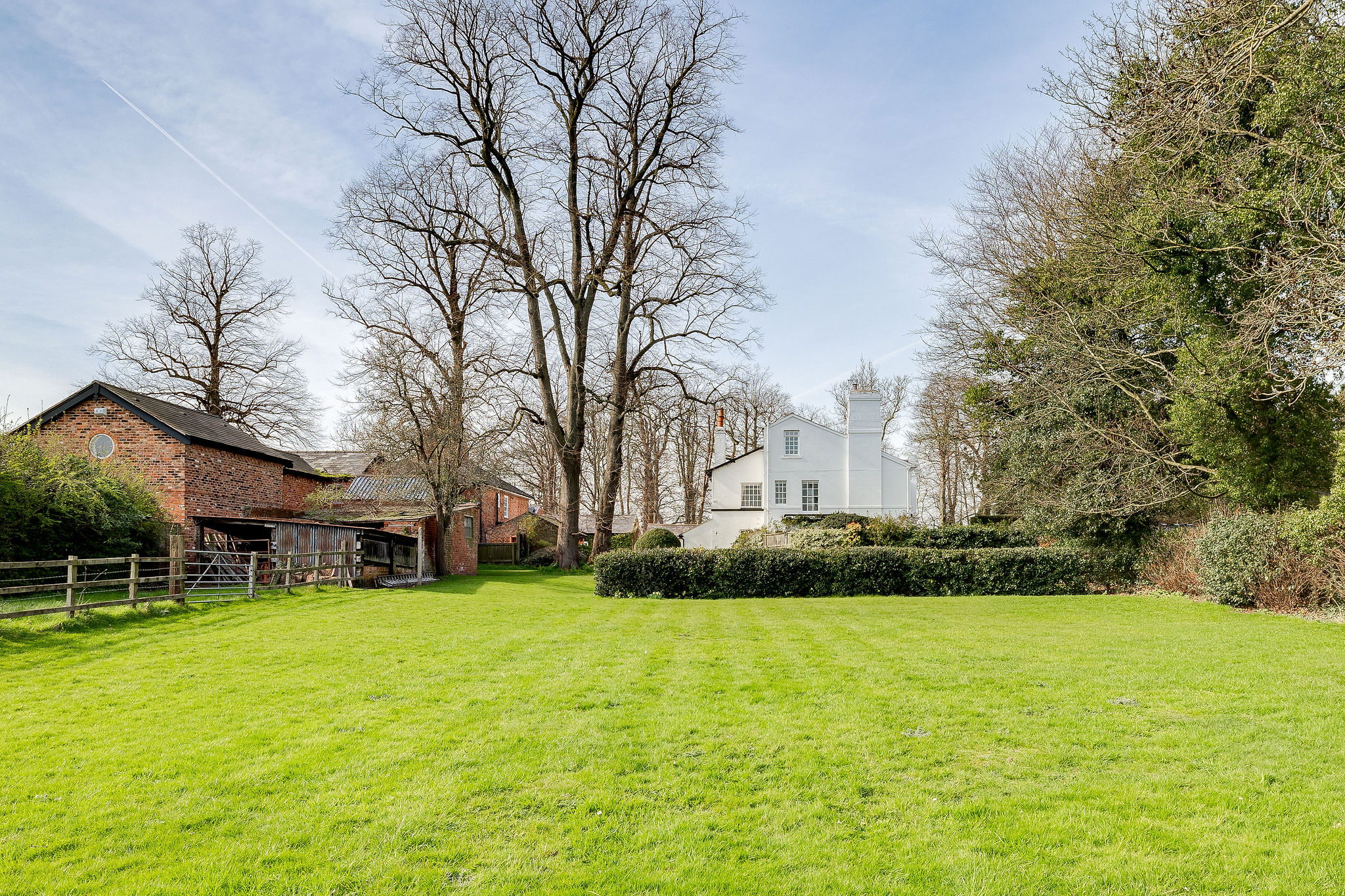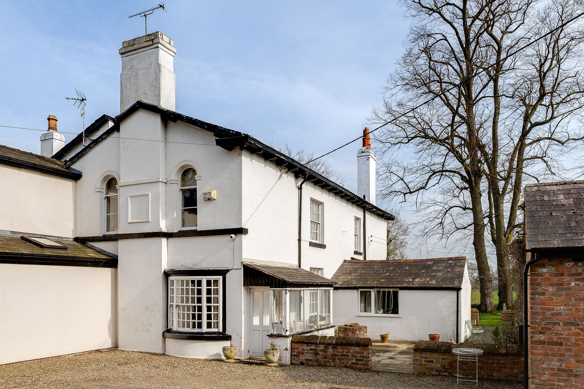 Set discreetly along Warrington Road, Trafford House Farm is a semi-detached home with origins in the 18th century. Once part of a larger manor, it now stands as an individual property within approximately one acre of mature grounds. Its position offers a balance of privacy and convenience, with village amenities nearby and Chester within easy reach.